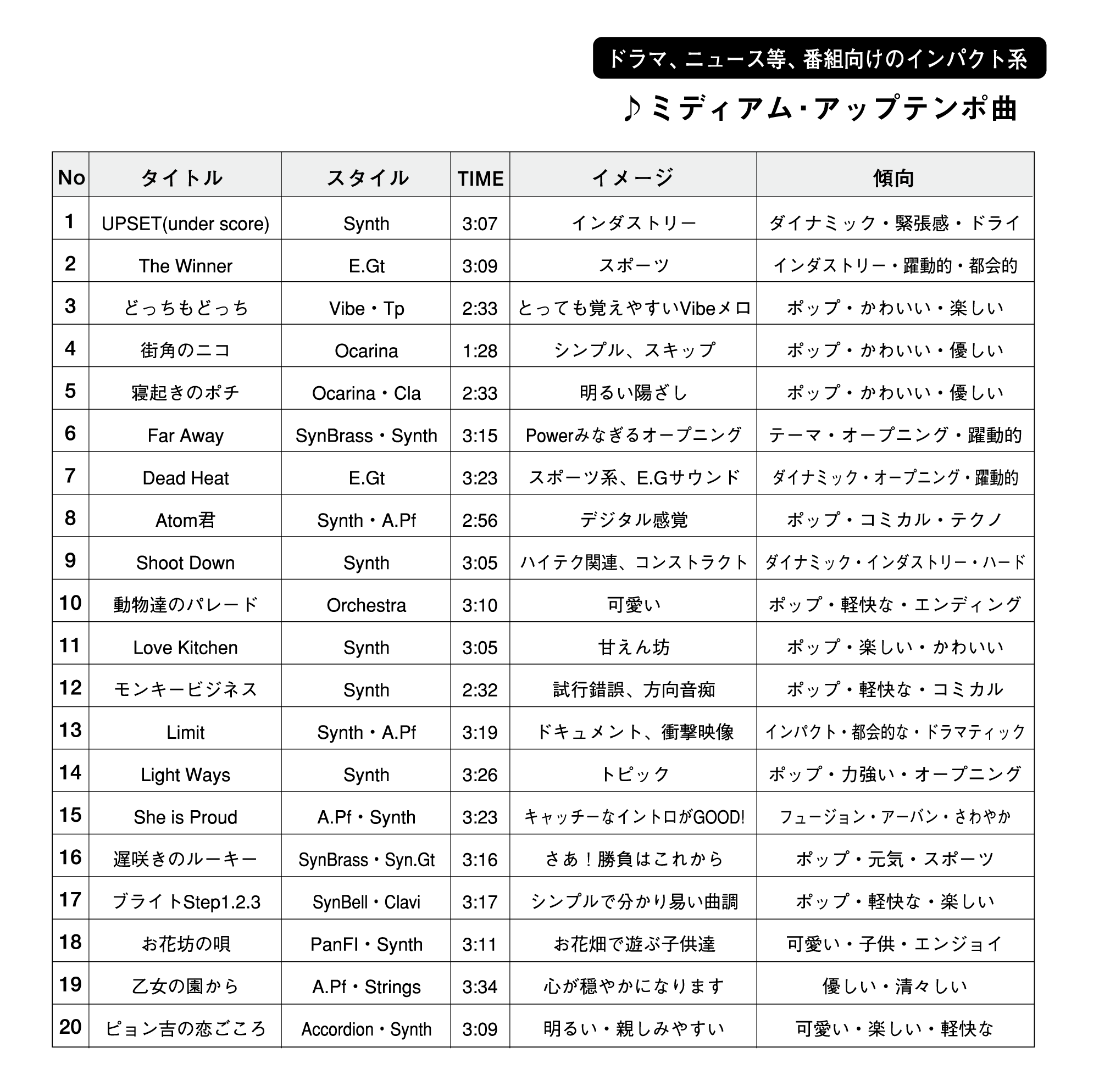 ドラマ、ニュース等、番組向けのインパクト系 |